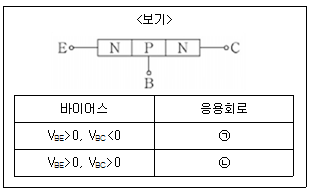 <보기>와 같이 NPN 트랜지스터 동작모드에 대한 응용 회로 ㉠, ㉡을 순서대로 표현한 것으로 옳은 것은? (순서대로 ㉠, ㉡)