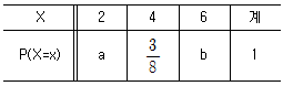 확률변수 X의 확률분포가 다음과 같다. E(X)=5 일 때, b-a의 값은? (단, a와 b는 상수이다)