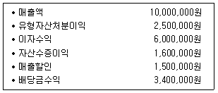 다음 자료를 토대로 영업외수익의 합계액은 얼마인가? (단, 도소매업을 가정한다.)