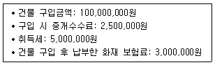 다음은 한공상사의 건물 취득 관련 자료이다. 건물의 취득원가는 얼마인가?