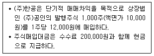 다음 자료를 토대로 계산한 (주)한공의 단기매매증권 취득금액은 얼마인가?