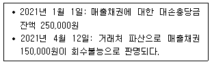 다음 자료에 의하여 회계처리하면 대손충당금 잔액은 얼마인가?