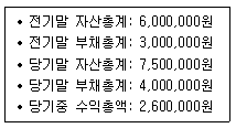 다음 (주)한공의 재무자료를 이용하여 회계기간 중 발생한 비용총액을 계산하면 얼마인가? (회계기간 중 이익잉여금 외 자본의 증감액은 없는 것으로 가정한다.)