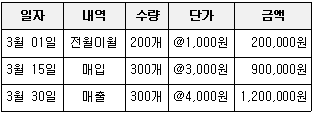 다음은 개인기업인 한공상사의 3월 중 상품 거래내역이다. 선입선출법에 의한 3월의 매출원가는 얼마인가? (단, 제시된 자료 외에는 고려하지 않는다.)