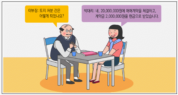 다음은 (주)한공의 사업용 토지 처분에 관한 대화이다. 이에 대한 회계처리 시대변 계정과목은?