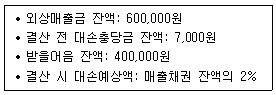 다음 자료를 토대로 결산정리 분개후 기말 재무상태표상 대손충당금 금액은 얼마인가?
