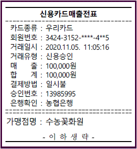 다음은 영업부 김대리의 결혼을 축하하기 위해 화환을 구입하고 받은 신용카드매출전표이다. 이에 대한 회계처리 시 적절한 계정과목은?