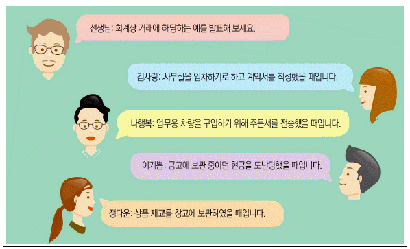 다음 대화에서 선생님의 질문에 올바른 답변을 한 사람을 고르시오.
