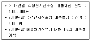 다음 자료를 토대로 (주)한공이 2019년말 추가로 설정해야 할 대손충당금을 계산하면 얼마인가?