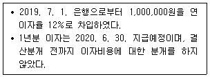 다음 자료를 토대로 한공기업의 2019. 12. 31. 재무상태표에 기록될 미지급비용을 계산하면 얼마인가? (단, 이자비용은 월할계산한다.)