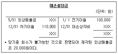 다음 자료에 의하여 손익계산서에 반영될 대손상각비는 얼마인가?