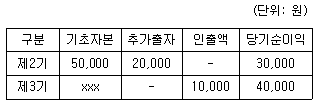 다음은 개인기업인 한공기업의 회계기간별 재무자료이다. 제3기 기말자본을 계산하면 얼마인가?