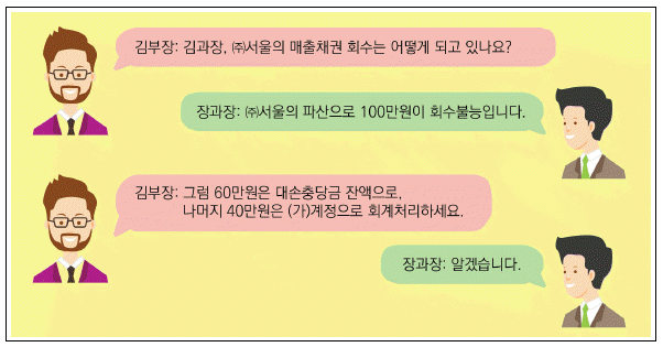 다음은 한공기업의 매출채권에 대한 대화이다. (가)에 해당하는 차변 계정과목으로 옳은 것은?