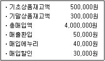 다음 자료를 토대로 매출원가를 계산하면 얼마인가?