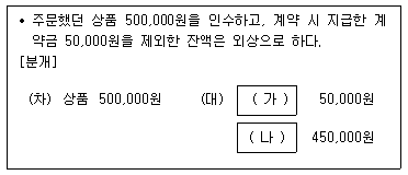 다음 상품 거래를 회계처리할 때, (가), (나)에 해당하는 계정과목으로 옳은 것은? (순서대로 (가), (나))