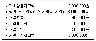 다음은 한공상점의 재고자산에 관한 자료이다. 매출원가를 계산하면 얼마인가?