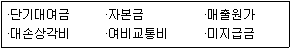 다음 중 재무상태표에 나타나는 계정과목은 모두 몇 개인가?