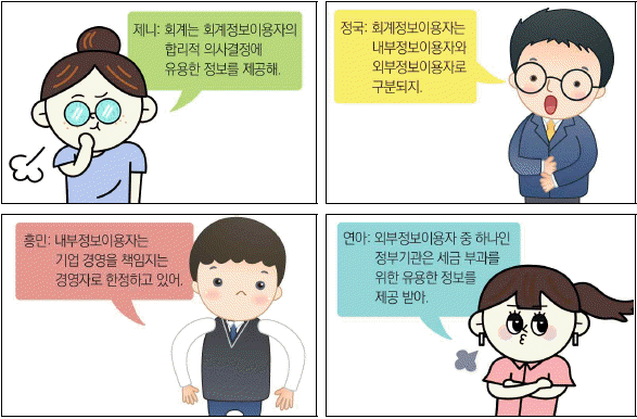 다음은 회계의 목적에 관한 대화이다. 바르게 설명하고 있는 학생을 모두 고른 것은?