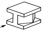 그림과 같은 입체도를 화살표 방향에서 본 투상도로 가장 옳은 것은? (단, 해당 입체는 화살표 방향으로 볼 때 좌우 대칭 구조이다.)