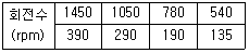 표와 같은 회전수를 가진 밀링머신에서 커터의 지름 120 mm이고, 한 날당 이송이 0.2mm, 커터의 날수 8개인 초경 절삭공구를 사용하여 절삭하고자 한다. 이때, 절삭 속도를 약 150m/min로 하고자 할 때 적합한 회전수는?