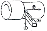 이송 절삭렬은 그림과 같이 서로 직각으로 된 세 가지 분력으로 나누어서 생각 할 수 있다. 그림에서 ①은 무슨 분력인가?