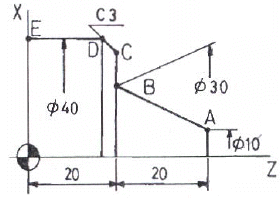 다음과 같은 선반 도면에서 지름지정으로 C점의 위치 데이터로 옳은 것은?