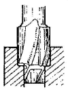 그림과 같이 작은 나사나 볼트의 머리를 공작물에 묻히게 하기 위하여, 단이 있는 구멍 뚫기를 하는 작업은?