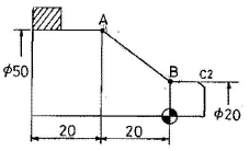 다음 그림에서 B→A로 절삭할 때의 CNC 선반 프로그램으로 옳은 것은?