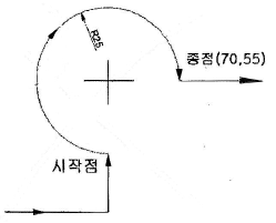 다음 그림의 머시닝센터의 원호 가공 경로를 나타낸 것으로 옳은 것은?