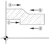 아래 그림에서 CNC선반 공구 인선을 보정할 때 우측 보정(G42)을 나타낸 것끼리 짝지어진 것은?