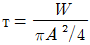 전단하중 W(N)를 받는 볼트에 생기는 전단응력 т(N/mm2)을 구하는 식으로 옳은 것은? (단, 볼트 전단면적을 Amm2이라고 한다.)
