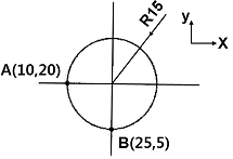 다음 그림은 절대 좌표계를 사용하여 A(10,20)에서 B(25,5)으로 시계방향 270° 원호가공을 하려고 한다. 머시닝센터 가공 프로그램으로 올바르게 명령한 것은?