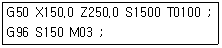 다음 CNC선반 프로그램에서 바이트가 현재 외경을 20mm로 가공하고 있다면 이때의 주축회전수는 몇 rpm인가?