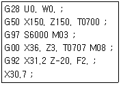 다음은 CNC선반의 1줄 나사가공 프로그램이다. 프로그램에 사용된 나사의 피치를 나타내는 것은?