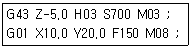다음은 머시닝센터에서 가공되는 프로그램의 일부이다. 가공에 사용되는 공구가 2날, ø30 엔드밀인 경우 이론적인 날당 이송 속도(mm/날)는 약 얼마인가?