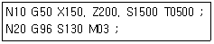 다음 CNC선반 프로그램에서 ø15mm인 지점을 가공시 주축의회전수는 몇 rpm 인가?