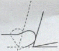 점성이 큰 재질을 작은 경사각의 공구로 절삭할 때, 절삭 깊이가 클 때 생기기 쉬운 그림과 같은 칩의 형태는?
