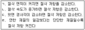 절삭 저항을 변화시키는 요소에 대한 설명으로 올바른 것을 <보기>에서 모두 고른 것은?