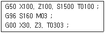 다음 CNC선반 프로그램에서 지름이 30mm인 지점에서의 주축 회전수는 몇 rpm인가?