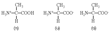 그림은 용액의 액성에 따라 다른 형태로 존재하는 아미노산인 알라닌의 구조식이다. 이에 대한 설명으로 가장 적절하지 않은 것은?