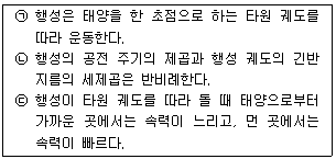 케플러(Kepler, J.)는 행성의 운동에서 세 가지의 규칙성을 발견하였다. 그 세 가지 규칙성에 대한 설명으로 옳은 것만을 보기에서 있는 대로 고른 것은?