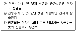 진동수가 f1인 빛을 사용하여 광전 효과 실험을 수행하였으나, 전자가 방출되지 않았다. 이에 대한 설명으로 옳은 것만을 보기에서 있는 대로 고른 것은? (단, 금속의 문턱 진동수는 이다.)