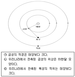 그림은 어느 해 동짓날 금성, 지구, 목성의 태양에 대한 상대적 위치를 나타낸 것이다. 이에 대한 설명으로 옳은 것만을 보기에서 있는 대로 고른 것은?