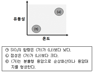 다음 그림은 서로 다른 종류의 용암 (가)와 (나)의 특성을 나타낸 것이다. 이에 대한 설명으로 옳은 것만을 보기에서 있는 대로 고른 것은?
