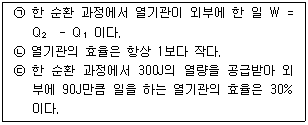 다음 그림은 고열원으로부터 Q1의 열을 공급받아 W의 일을 하고 저열원으로 Q2의 열을 방출하는 열기관을 나타낸 것이다. 이에 대한 설명으로 옳은 것만을 보기에서 있는 대로 고른 것은?