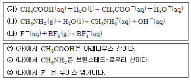 다음은 산 염기 반응의 화학 반응식이다. 이에 대한 설명으로 옳은 것만을 <보기>에서 있는 대로 고른 것은?