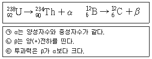 다음은 원자핵이 방사선 α 와 β를 방출하는 과정을 핵반응식으로 나타낸 것이다. 이에 대한 설명으로 옳은 것만을 <보기> 에서 있는 대로 고른 것은?
