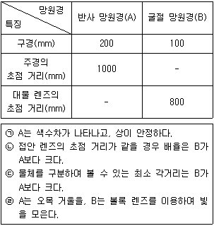 다음 표는 반사 망원경과 굴절 망원경의 특징을 나타낸 것이다. 이에 대한 설명으로 옳은 것만을 <보기>에서 모두 고른 것은?
