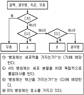 다음 그림은 구분 기준 (가)∼(다)에 따라 4가지 질병의 종류를 구분하는 과정을 나타낸 것이다. 이에 대한 설명으로 옳은 것만을 <보기>에서 모두 고른 것은?