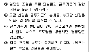 다음은 인체에서 혈당량 조절 과정을 설명한 것이다. 옳은 것만을 있는 대로 고른 것은?